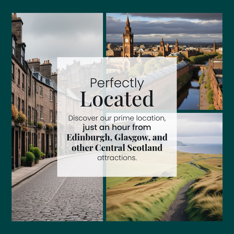 Nestled on the outskirts of Dollar, the park offers the perfect location for fishing, bird watching, hill-walking or golf. It’s also a great base for exploring the many attractions Central Scotland has to offer with Edinburgh, Glasgow, Stirling, St Andrews, Dundee, Perth, Loch Lomond and Gleneagles all within an hours drive.